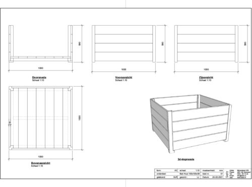 Afmetingen 100 × 100 × 60 cm